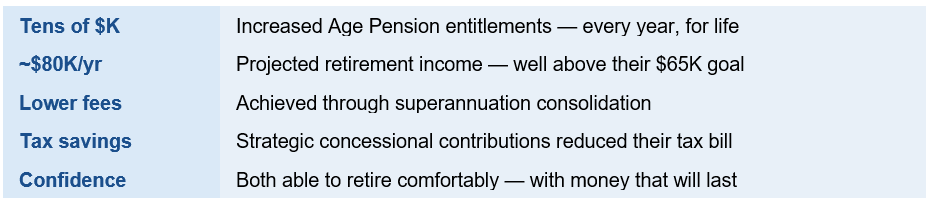 Their asset structure was limiting their Age Pension entitlements — costing them tens of thousands per year